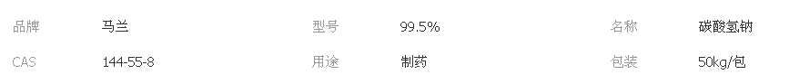 化学名:碳酸氢钠,别名:小苏打、苏打粉、重碳酸钠